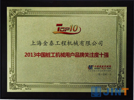 上海金泰荣获“2013中国桩工机械用户品牌关注度十强”
