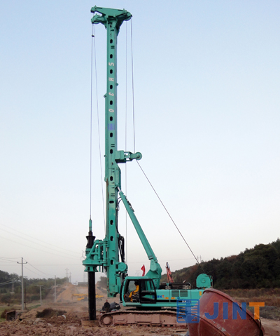 尽管寒风刺骨,但在沪昆高铁诸暨杭长铁路段建设工地上,却是一番忙碌的景象。设备的轰鸣声、工人的呐喊声给这个萧索的冬日增添几份生机。工地上最显眼的莫过上海于金泰公司的SH30多功能旋挖钻机了。绿色的机体、20多米高的设备,与自然融为一体。